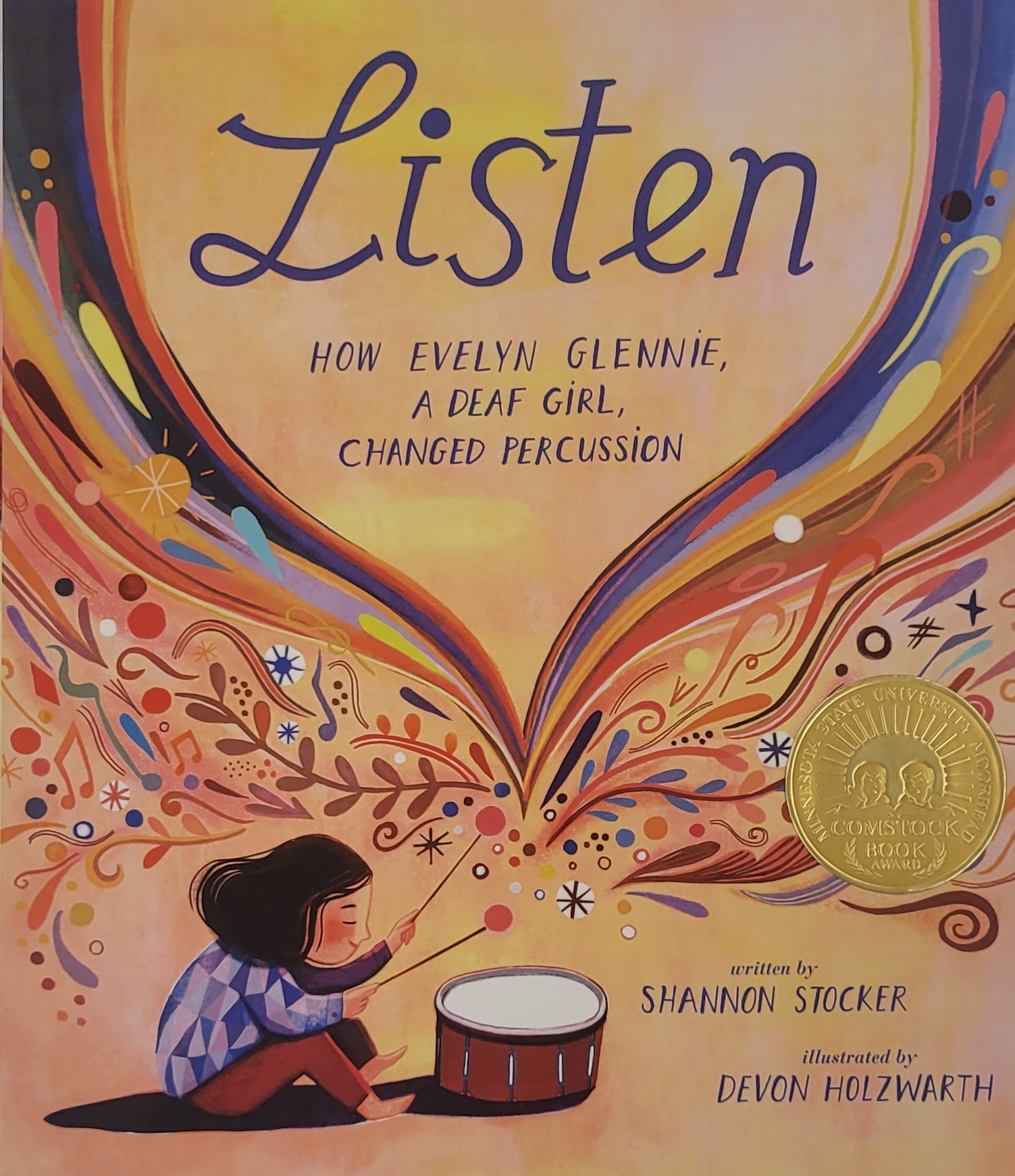 Listen: How Evelyn Glennie, a Deaf Girl, Changed Percussion written by Shannon Stocker and illustrated by Devon Holzwarth (Dial Books for Young Readers). 2022