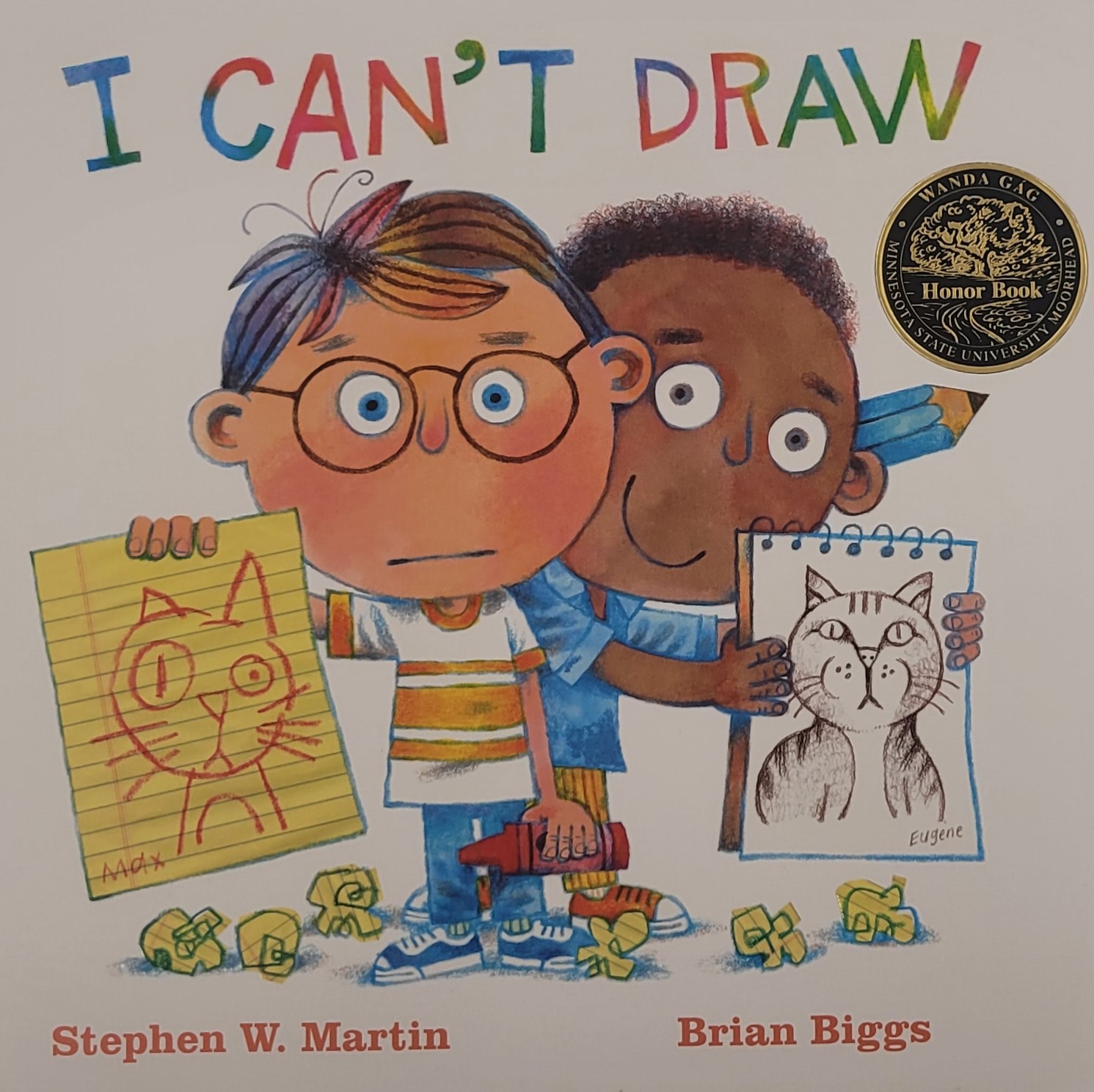 After listening to the book, children realized how lucky they were to be able to read and were inspired to read more. The book is not only outstanding for its story but also for its illustrations and book design. Oge Mora’s artwork rendered in acrylic paint, china marker, colored pencil, patterned paper, and book clippings fascinated the 4-6th graders. They could not stop talking about the illustrations, especially noting how the squiggles turned into words. One reader commented: “Photos on the endpapers brought students face-to-face with a real person and made the story more personal.”