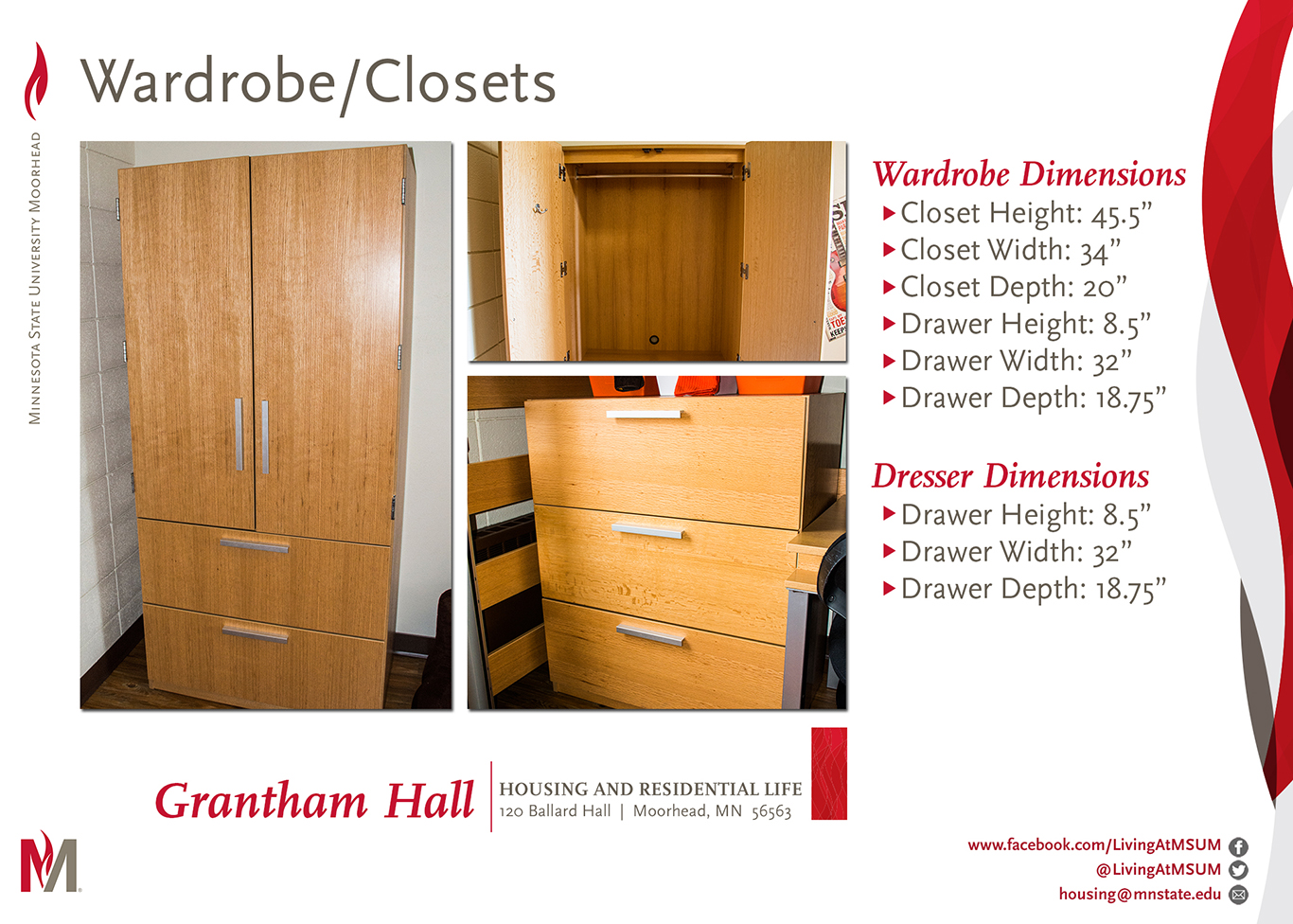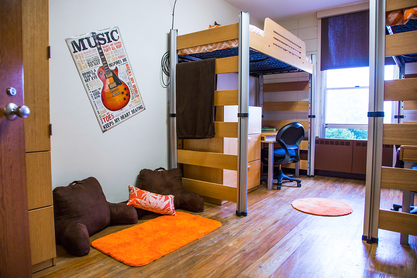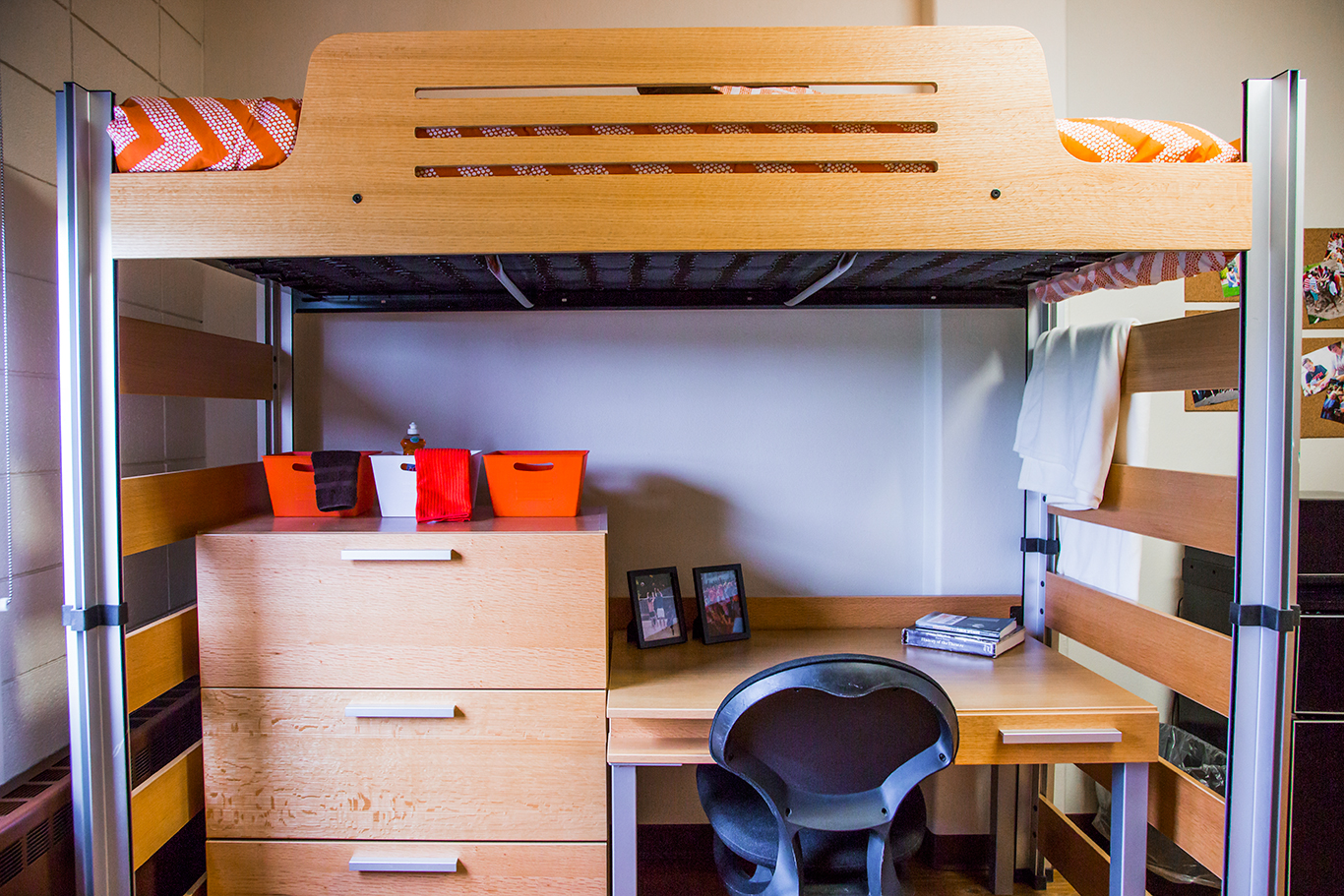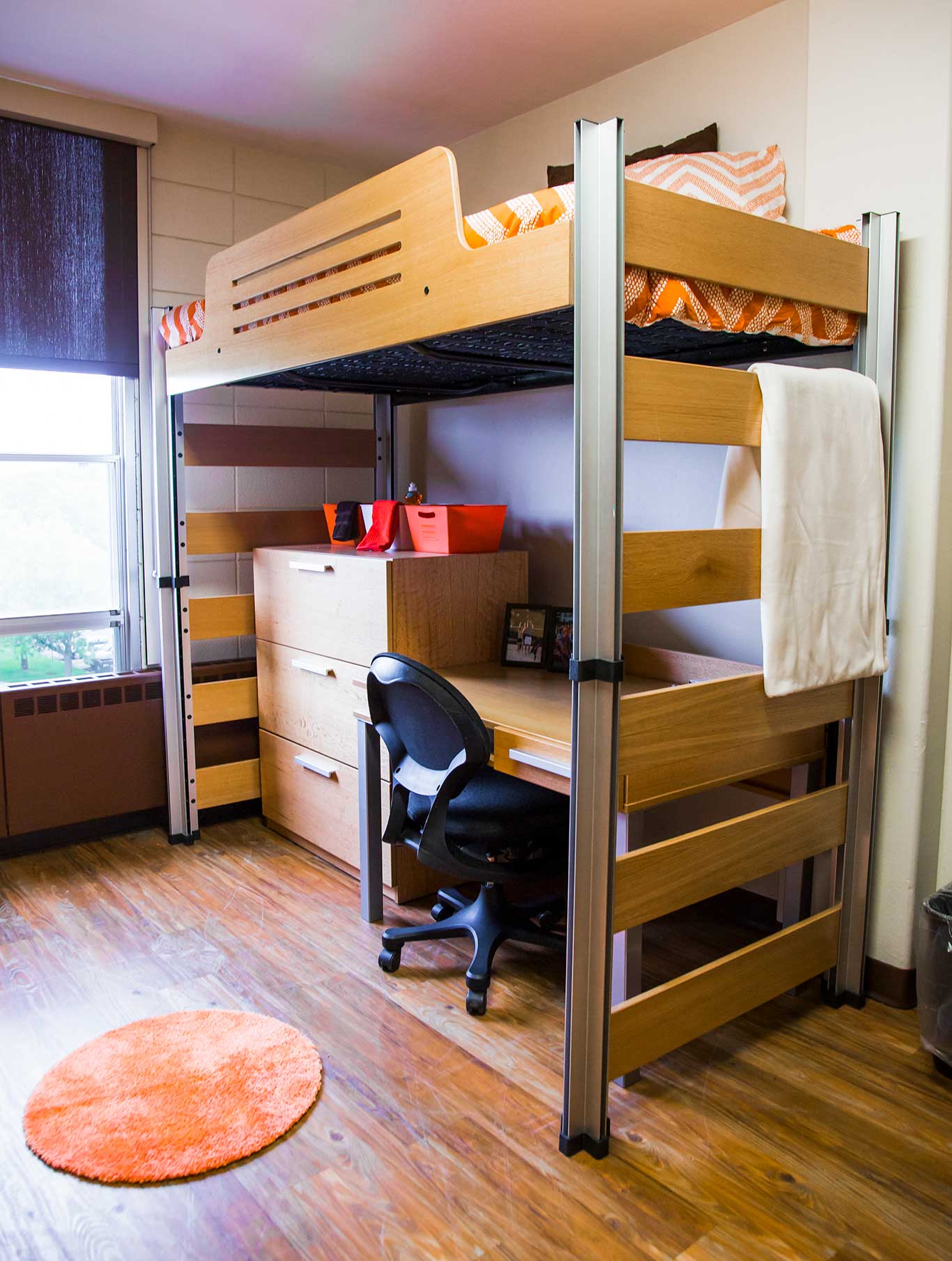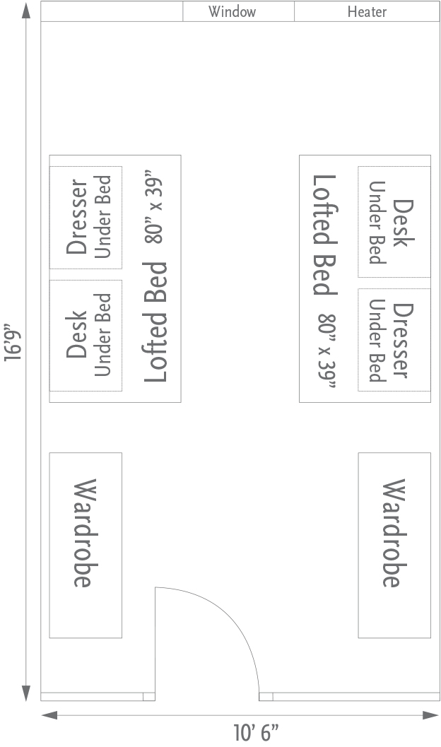 Looking for the residence hall in the midst of campus housing? Don’t miss Grantham Hall. It boasts comfortable rooms with laminate flooring and fully moveable furniture, which allows you to configure the space to your (and your roommate’s) liking. It also features modular beds you can adjust to eleven different heights—and even bunk or loft them.